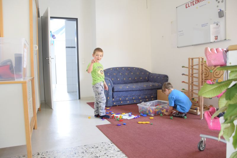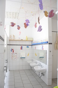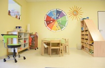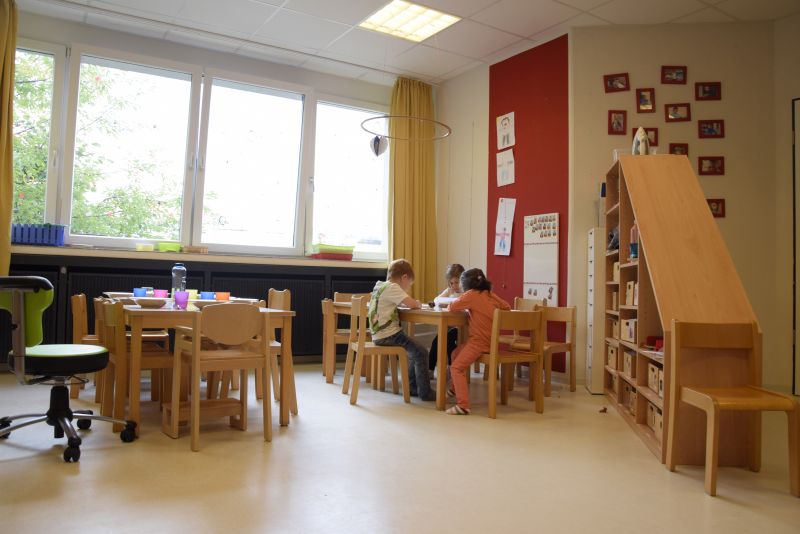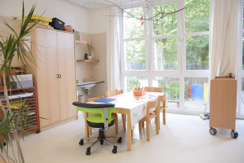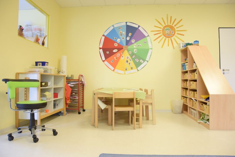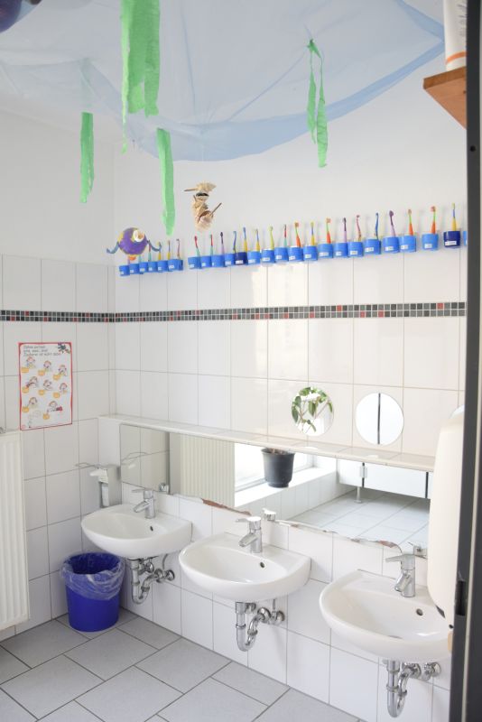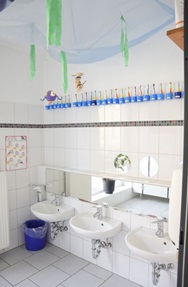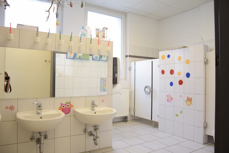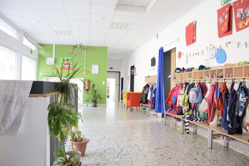 Jede Gruppe verfügt über einen Gruppenraum, einen Gruppennebenraum, einen Garderobenbereich und einen Waschraum.